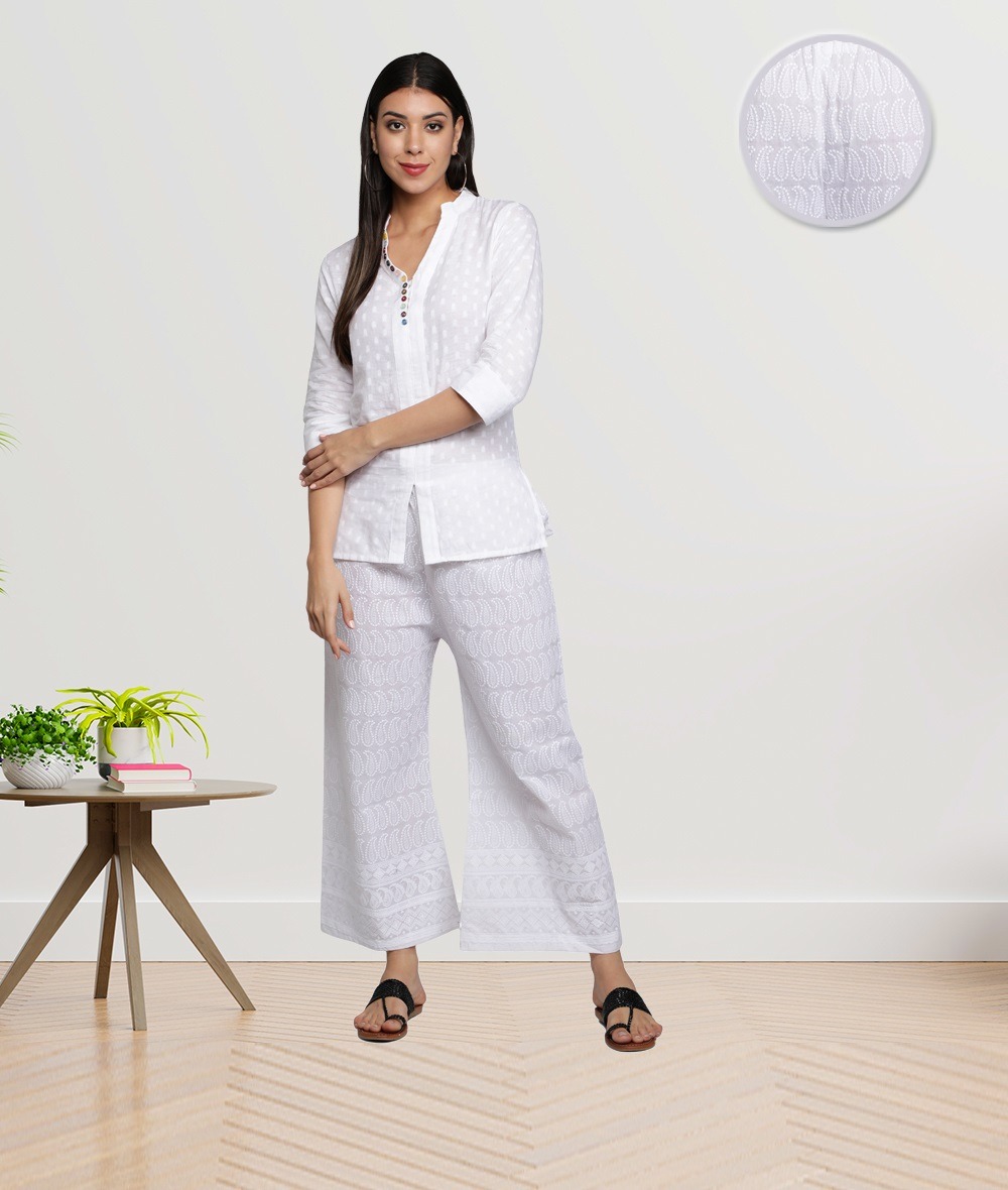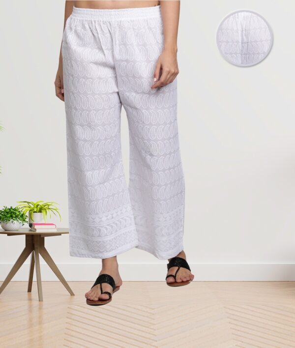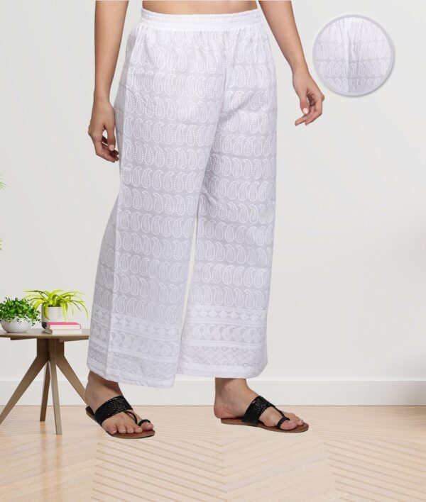 Fabclub Cotton Chikan Free Size Women Palazzo (White)