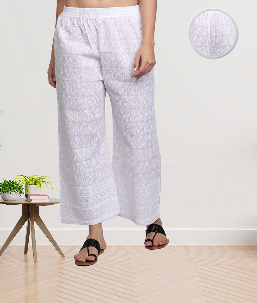 Cotton Chikan Palazzo Pant, Regular Fit, Stylish and Comfortable Free Size Palazzo, Best Fits for Waist Size 28 Inches To 42 Inches