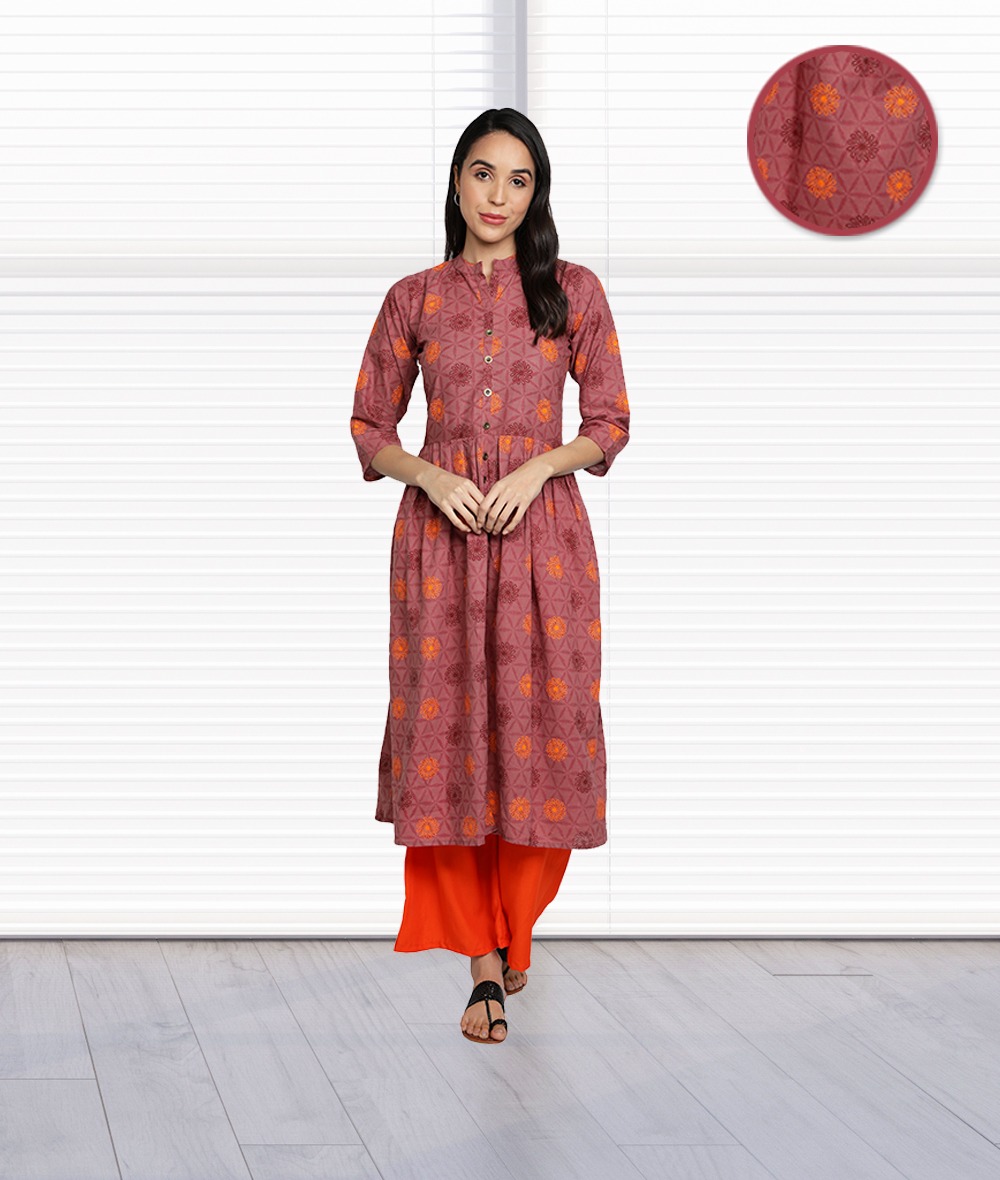 Magenta kurti from fabclub is made from pure cotton fabric. Magenta printed flared cotton kurta, has a three-quarter sleeves, mandarin neck, flared hem, front slit, button closure, length upto 46 inch. Trendy kurta is ideal for casual, party & festive wear. Trendy kurta is made from the finest quality cotton fabrics, it will keep you comfortable all day long. Team it with matching leggings or palazzo pant and accessories for a classy look.