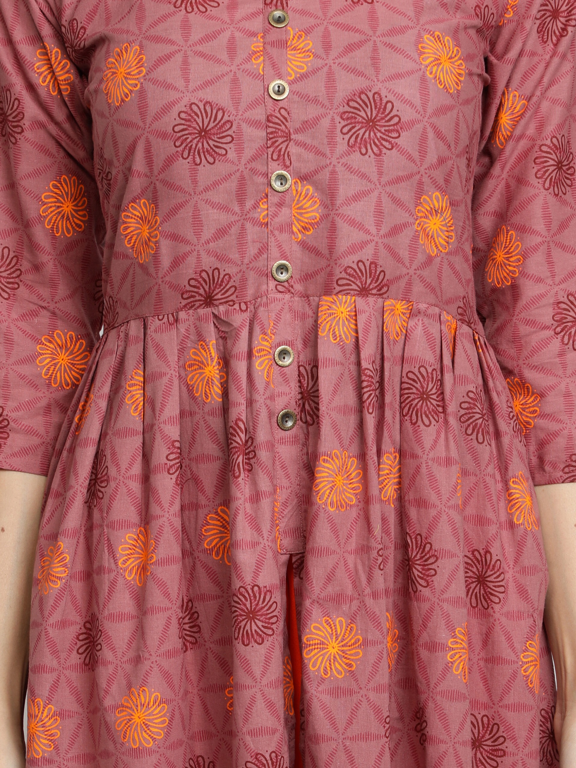 ₹1,299.00₹699.00Style : Magenta printed flared & front-slit cotton kurta