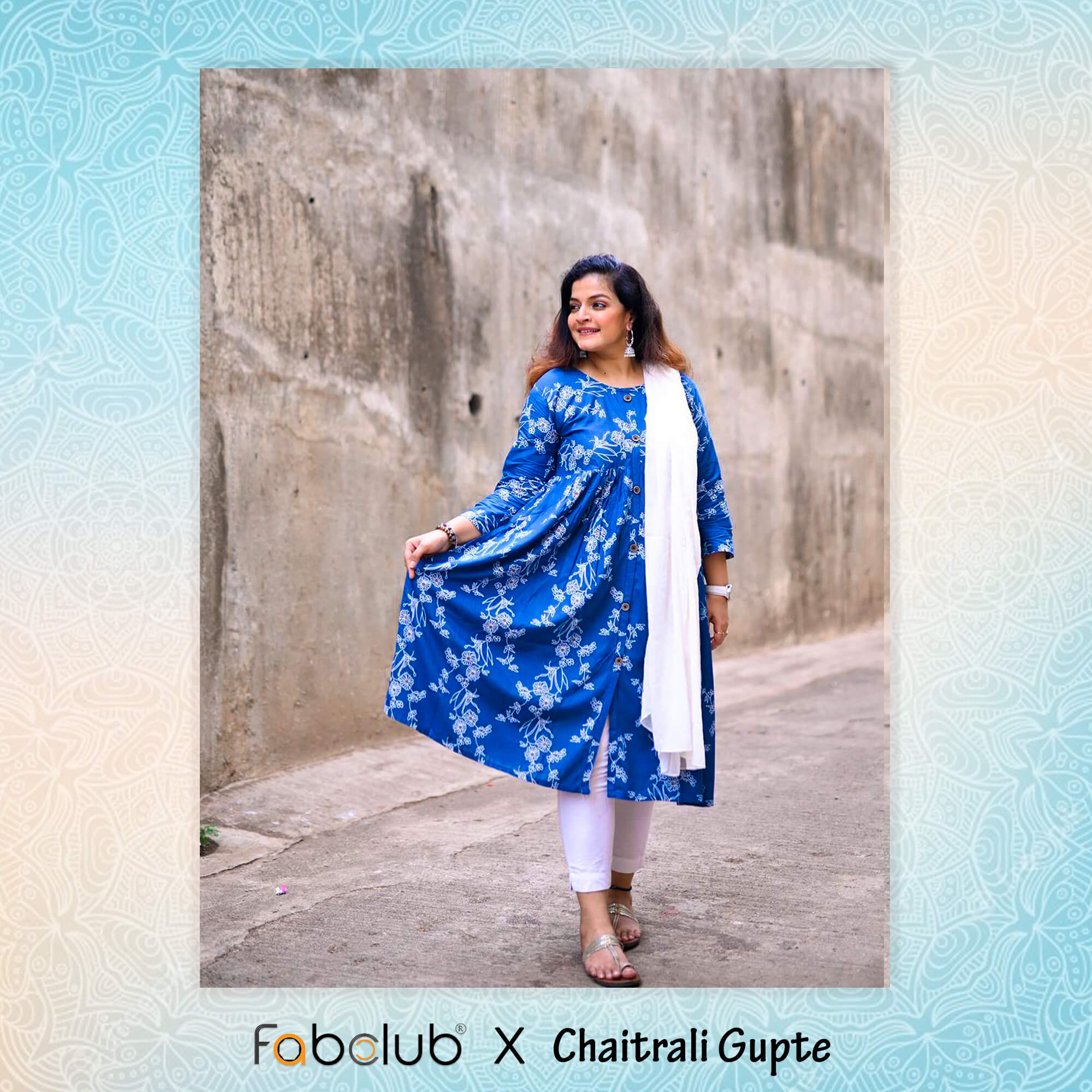 ₹1,899.00₹899.00Style : Blue floral printed flared & front-slit kurta