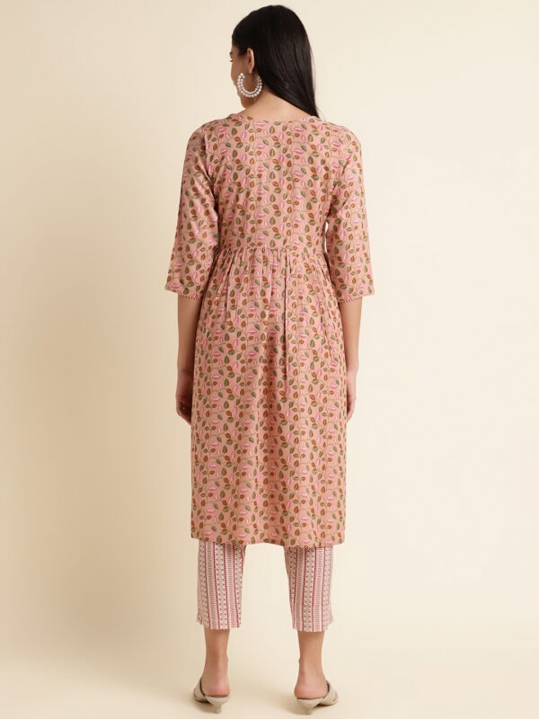 ₹3,499.00₹1,499.00Style : Peach gold foil printed rayon flared kurta set
