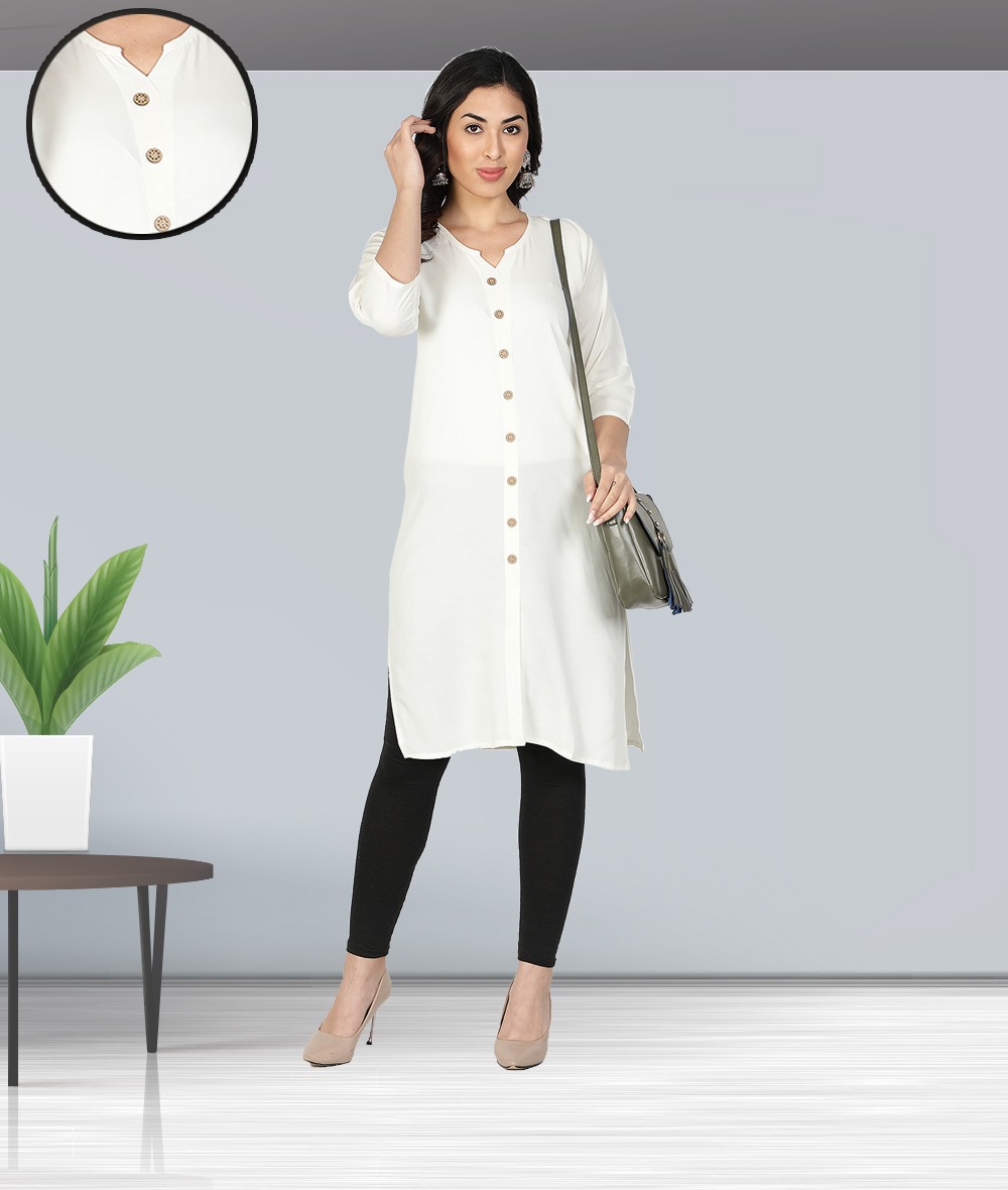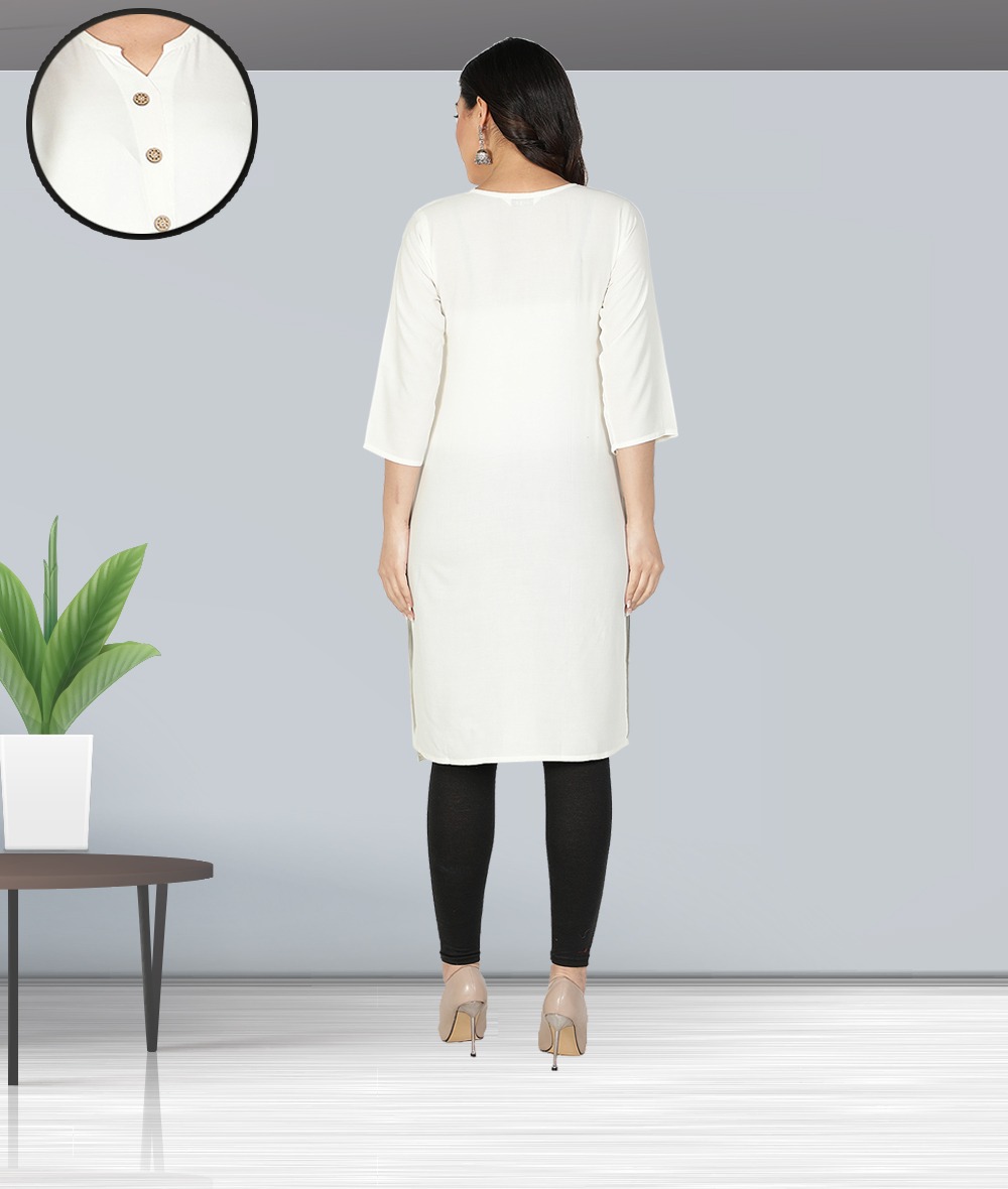 Fabclub Women Rayon Solid Plain Front Slit Straight Kurti (Off White)