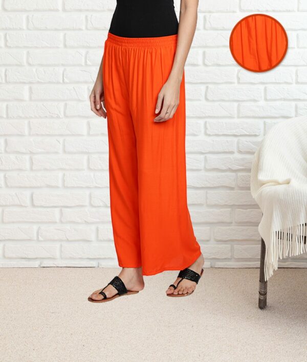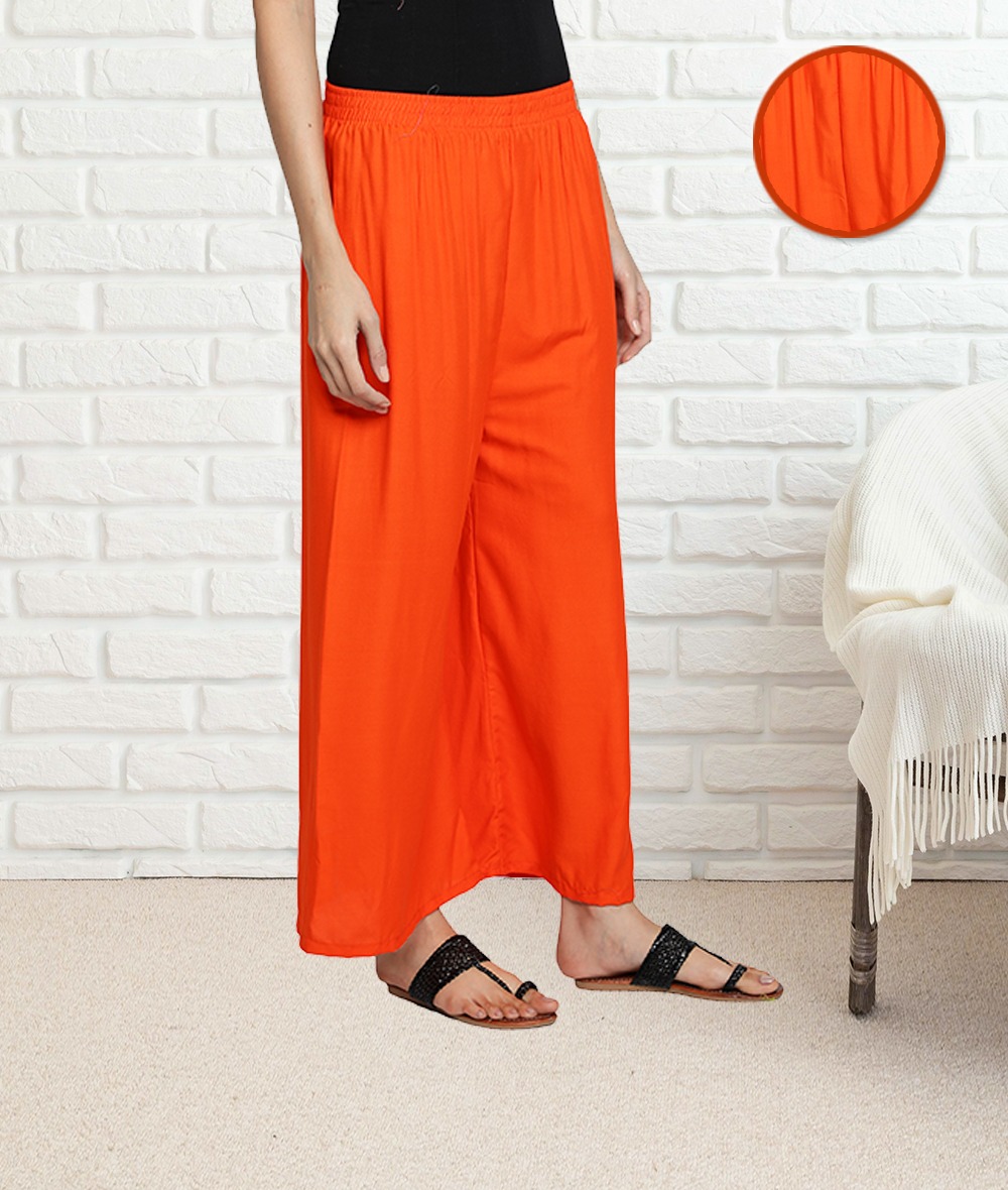 Fabclub Women’s Heavy Rayon Solid Plain Free Size Palazzo (Orange)