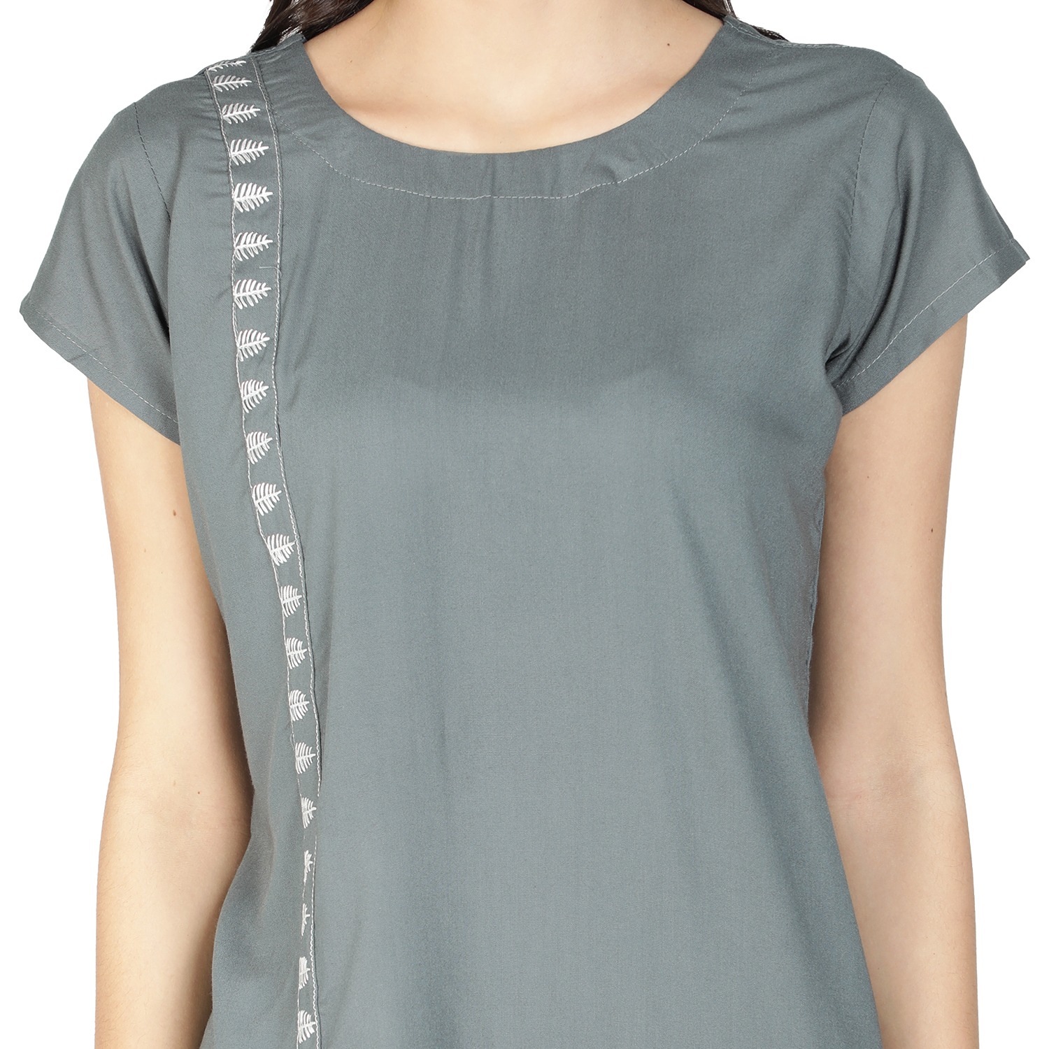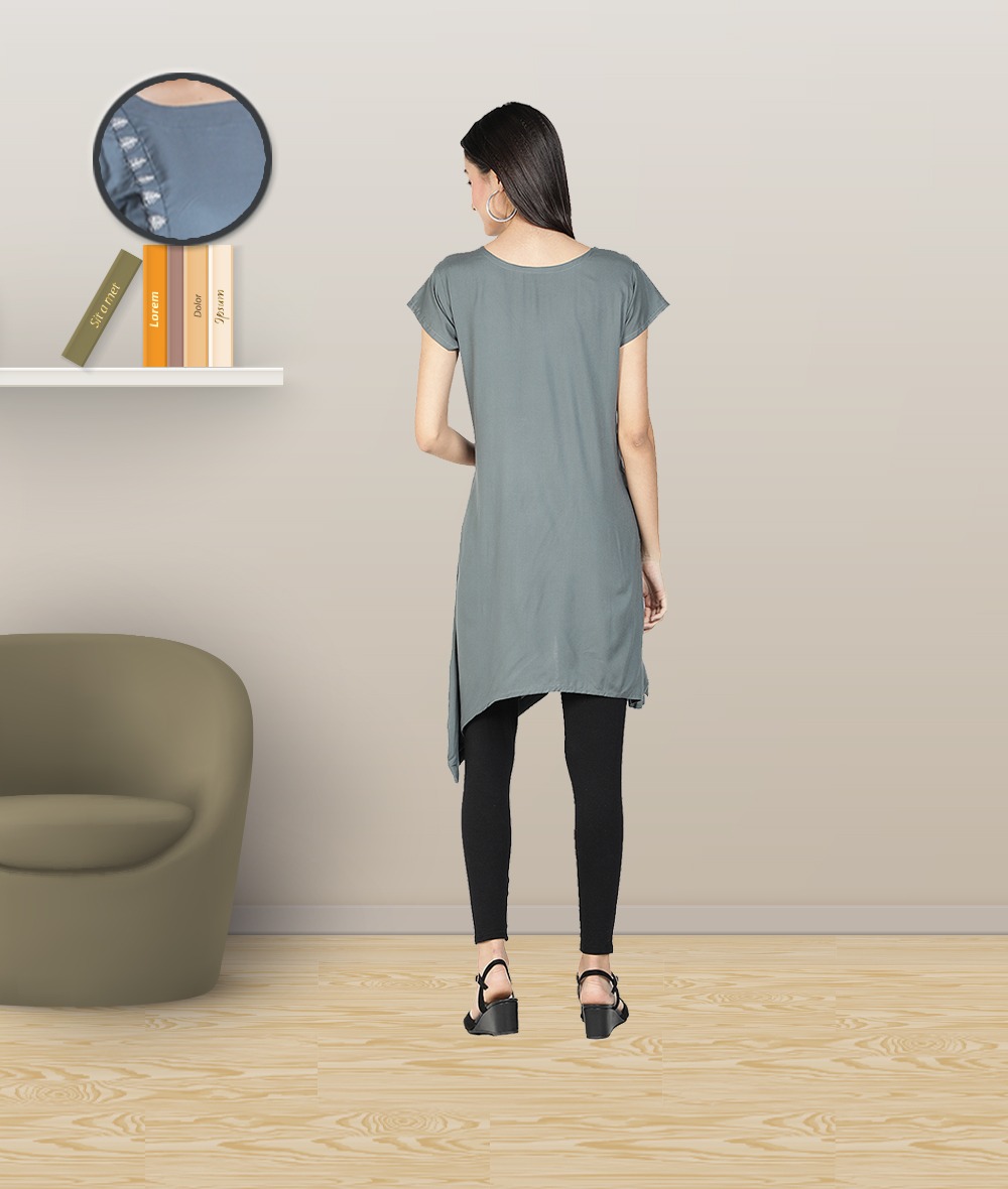 Rayon Embroidered Asymmetric Designer Women Kurti (Gray)