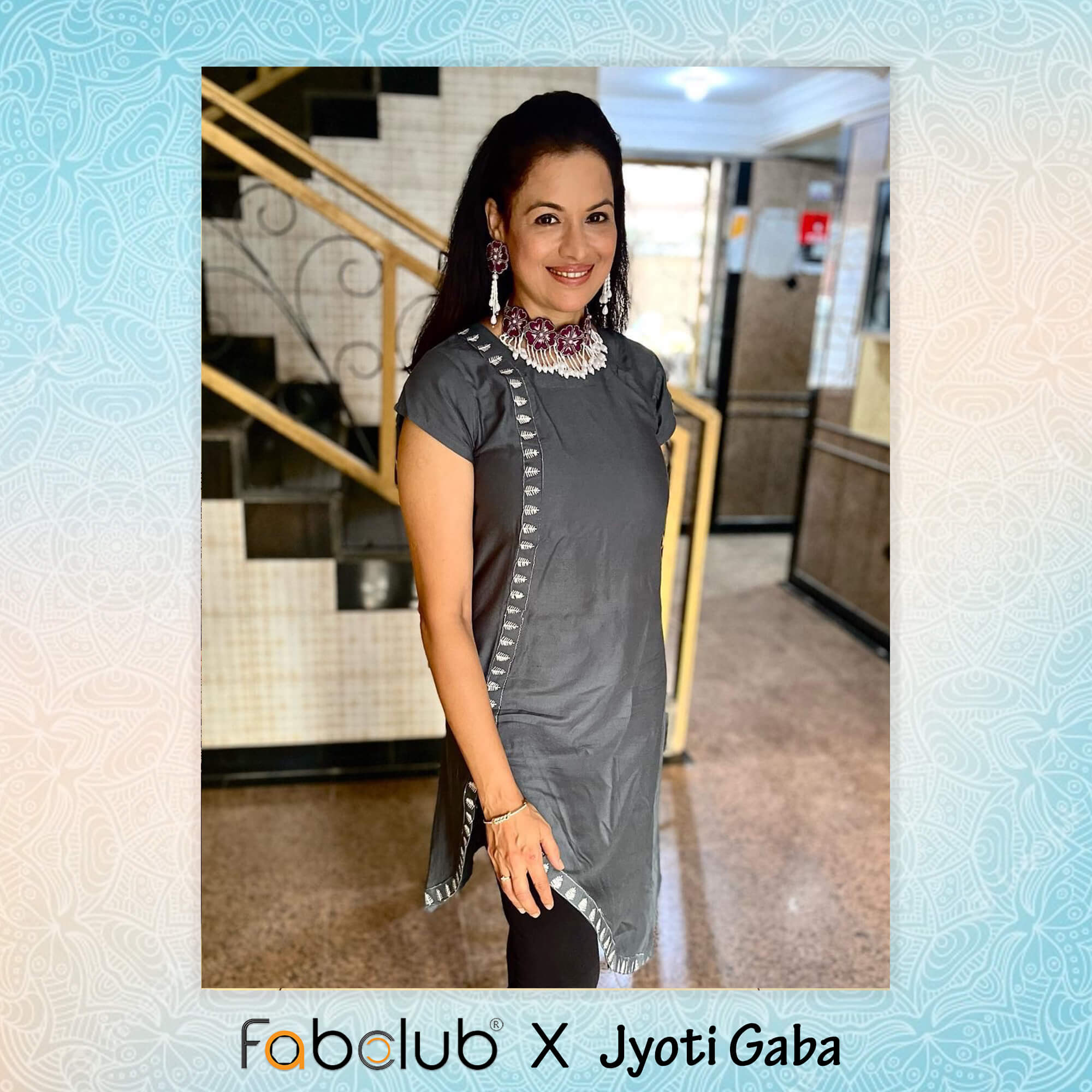 Style : Gray embroidered asymmetric designer kurta Pattern : Embroidered yoke detail, asymmetric hem