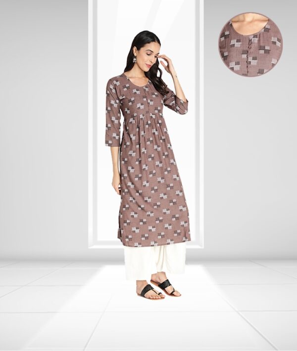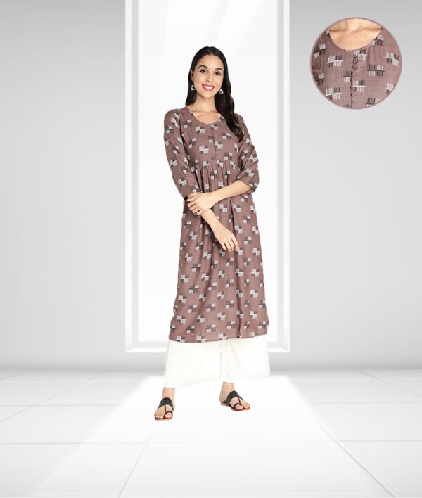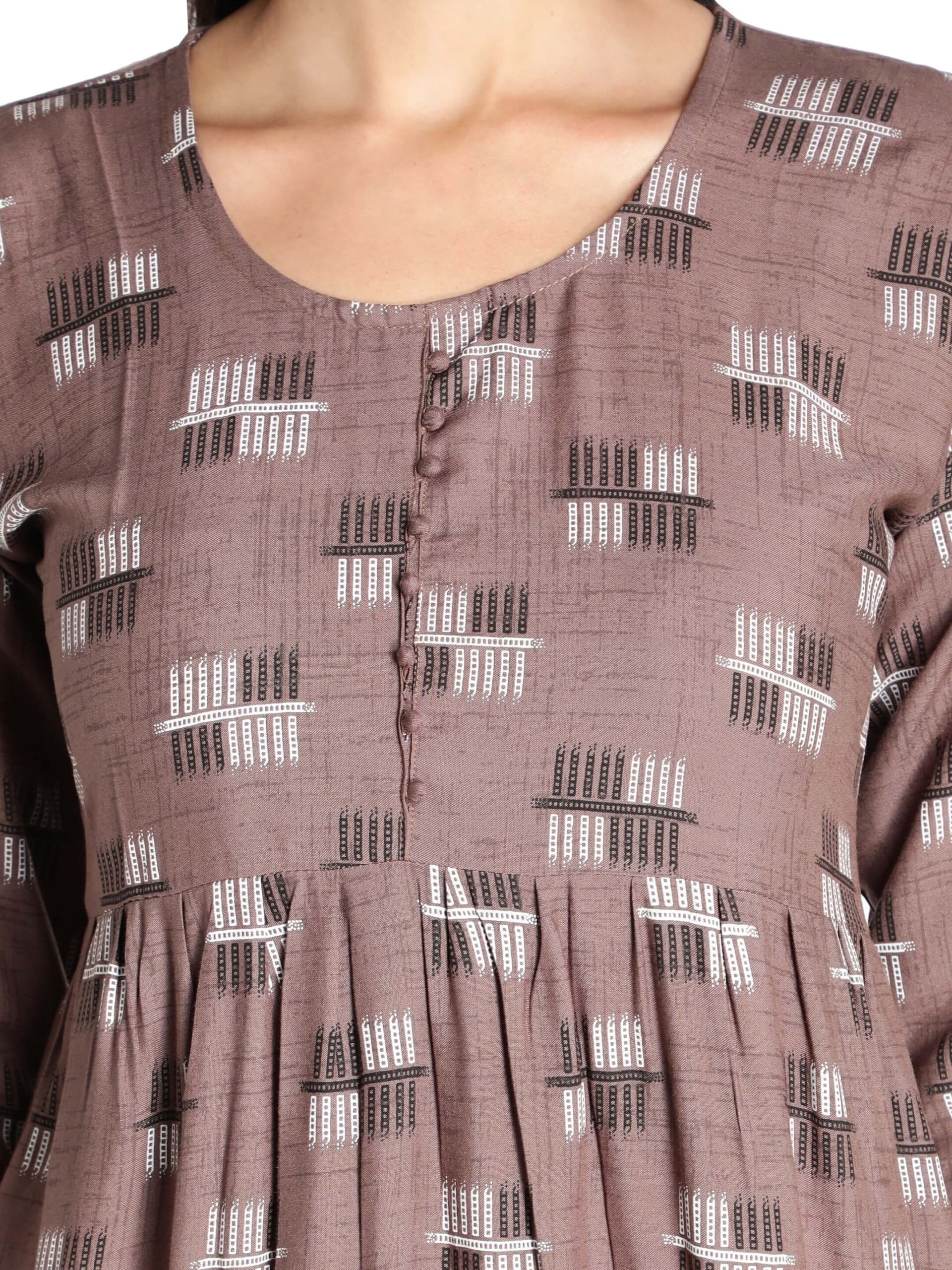 Women Rayon Printed Flared Kurti With Palazzo (Dusty Brown)