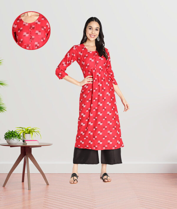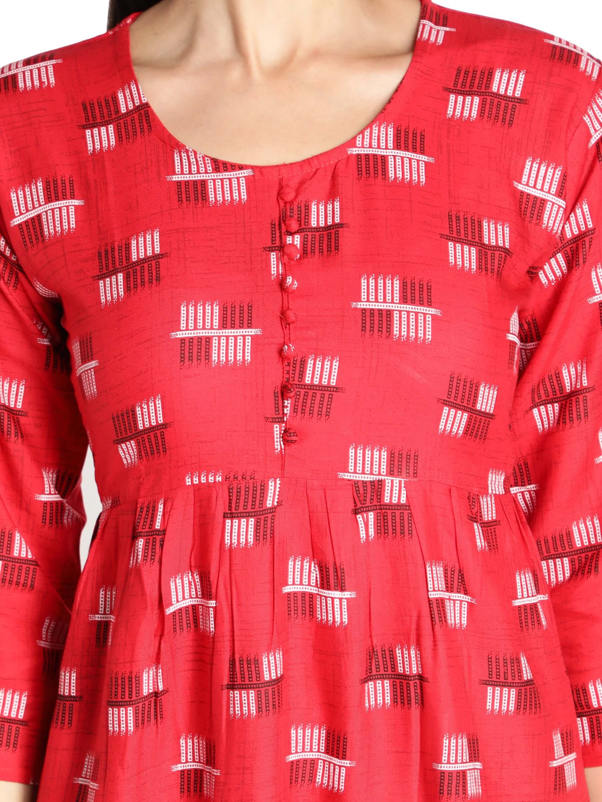 Women Rayon Printed Flared Kurti With Palazzo (Red)