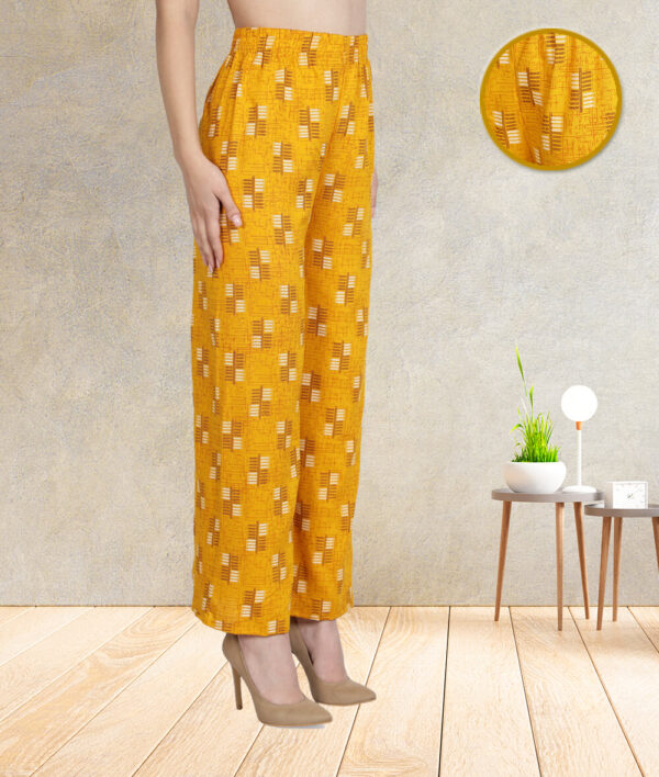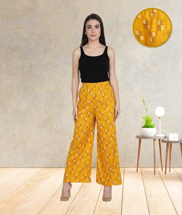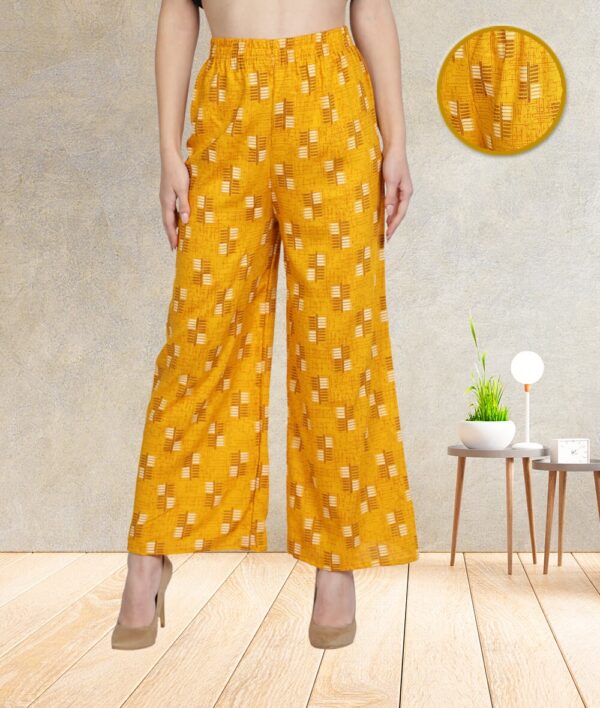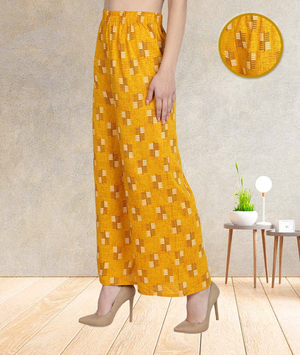 Women Rayon Printed Free Size Palazzo (Mustard Yellow)