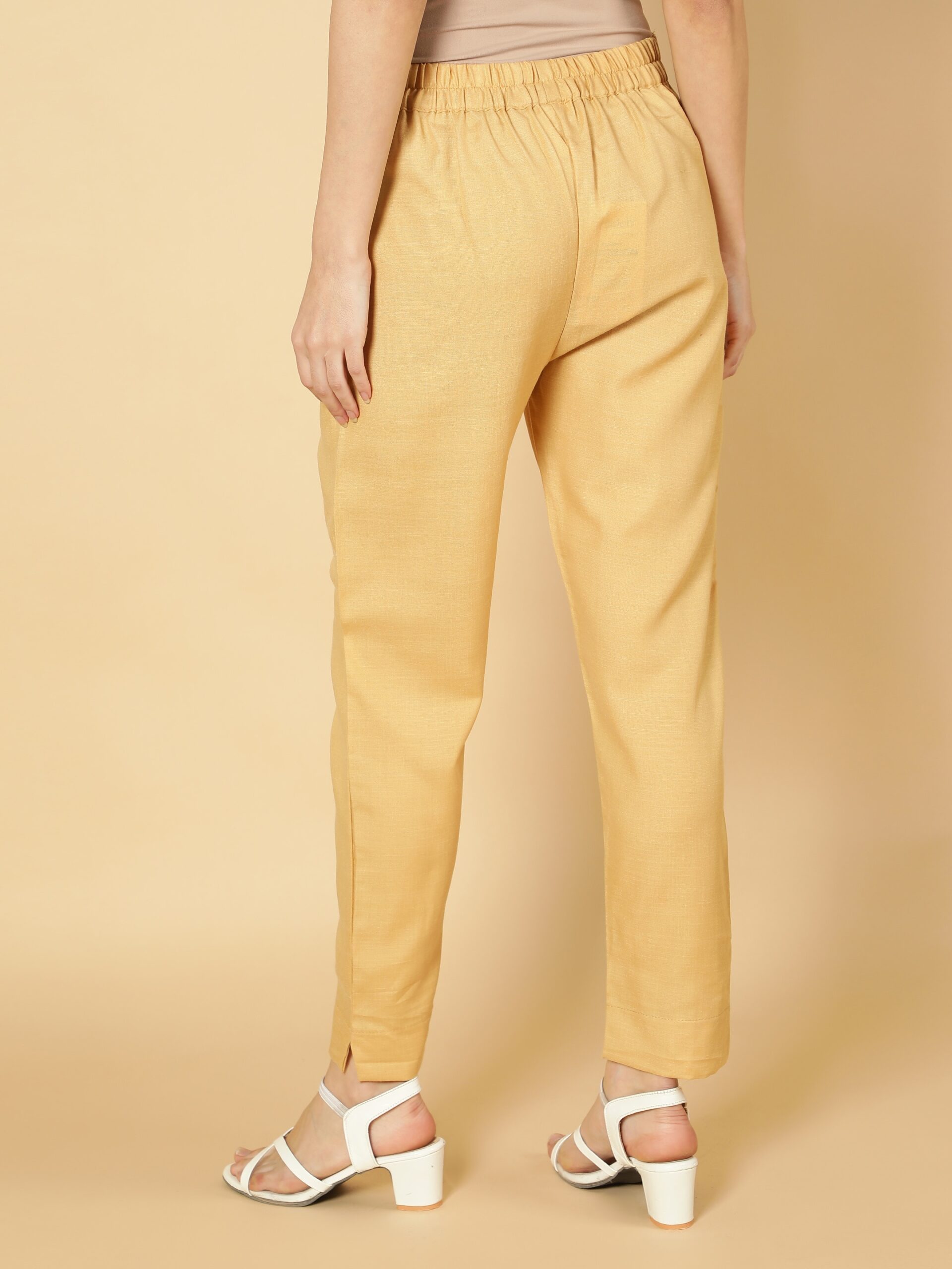 Women Solid Plain Cotton Trouser Pant (Beige)