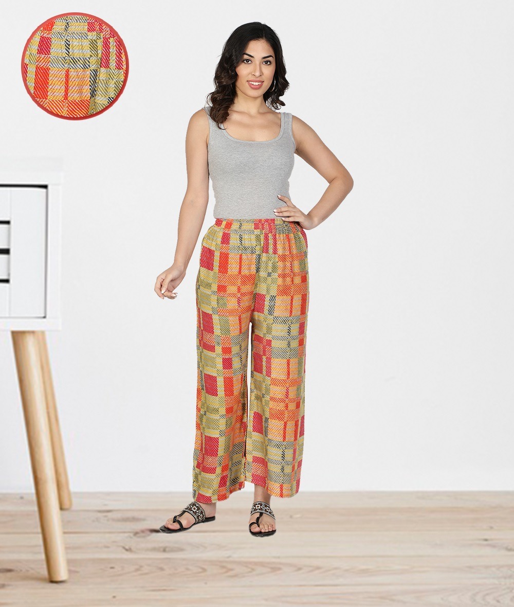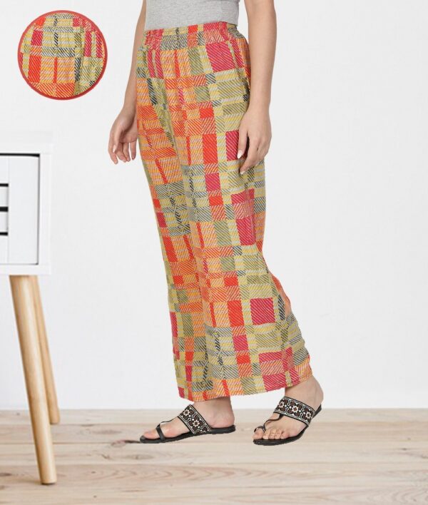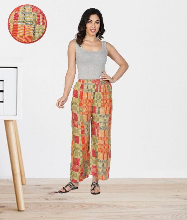 Women’s Heavy Rayon Checkered Printed Designer Free Size Palazzo (Multicolor)
