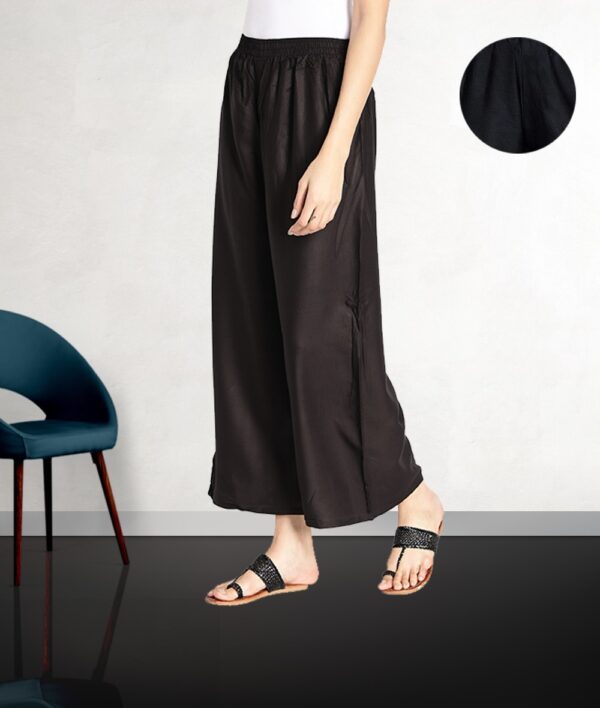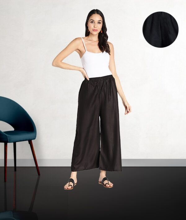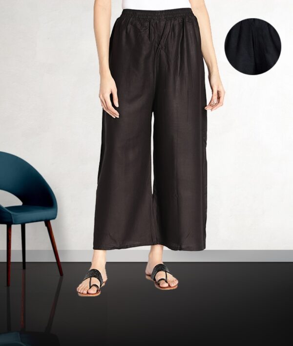 Women’s Heavy Rayon Solid Plain Free Size Palazzo (Black)
