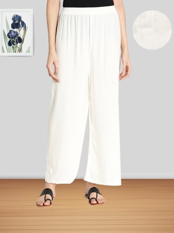 ₹1,199.00₹499.00Women’s Heavy Rayon Solid Plain Free Size Palazzo (Off White)