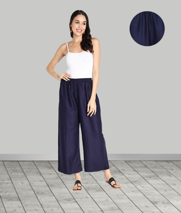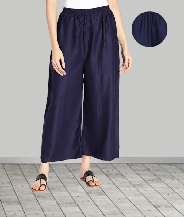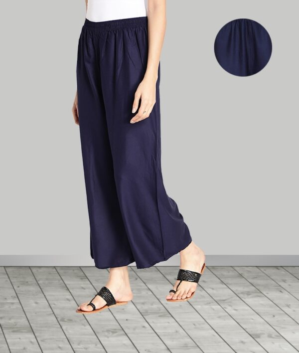 Women’s Heavy Rayon Solid Plain Free Size Palazzo (Navy Blue)