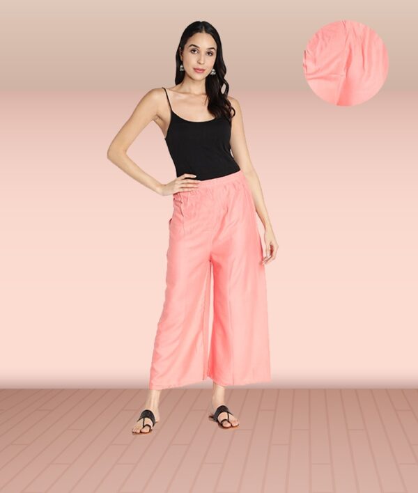 Women’s Heavy Rayon Solid Plain Free Size Palazzo (Peach)