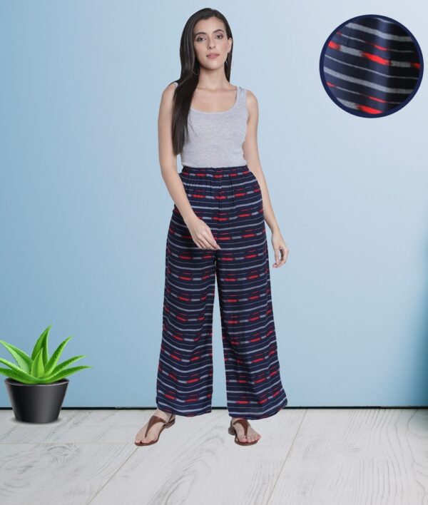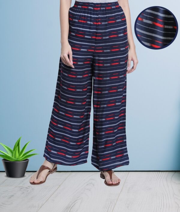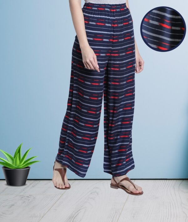 Women’s Heavy Rayon Striped Designer Free Size Palazzo (Navy Blue)