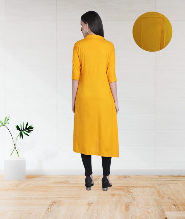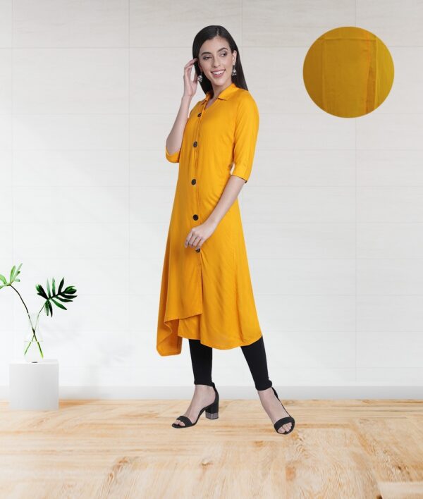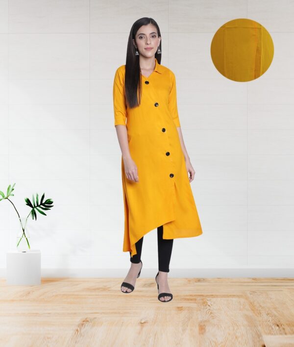 Women’s Rayon Solid Plain Asymmetric A-Line Designer Kurti (Mustard Yellow)