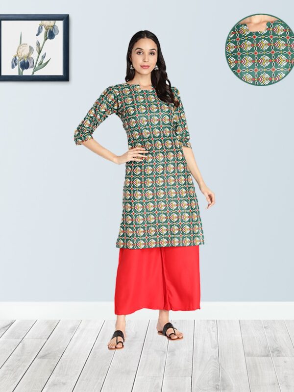 Fabclub Heavy Rayon Geometric Printed Straight Women Kurti (Multicolor)